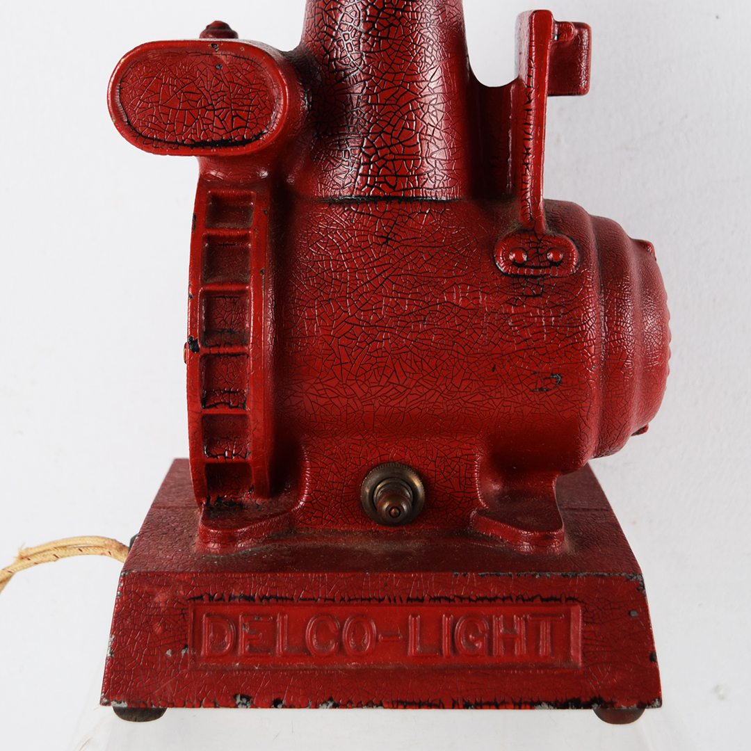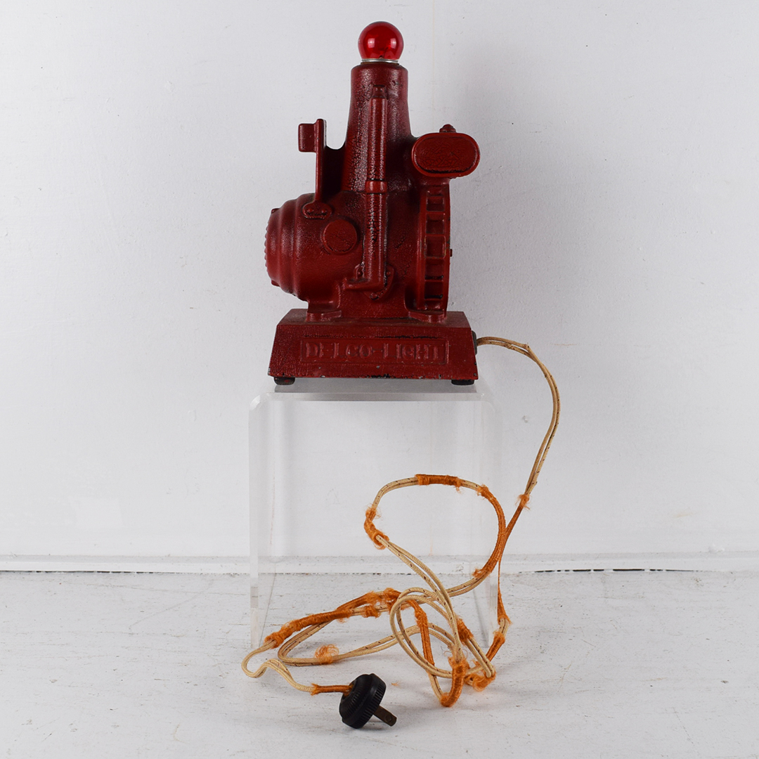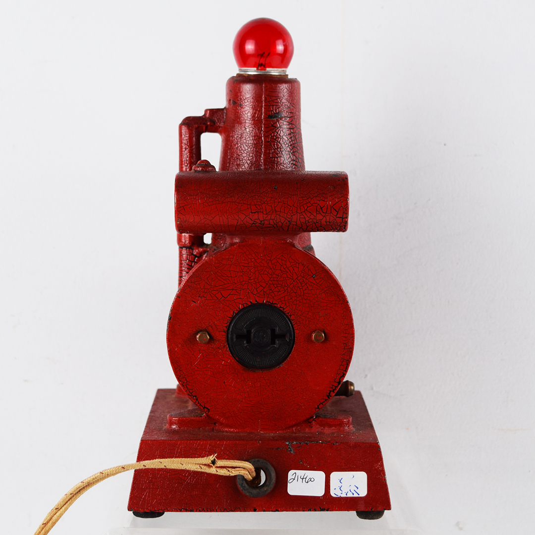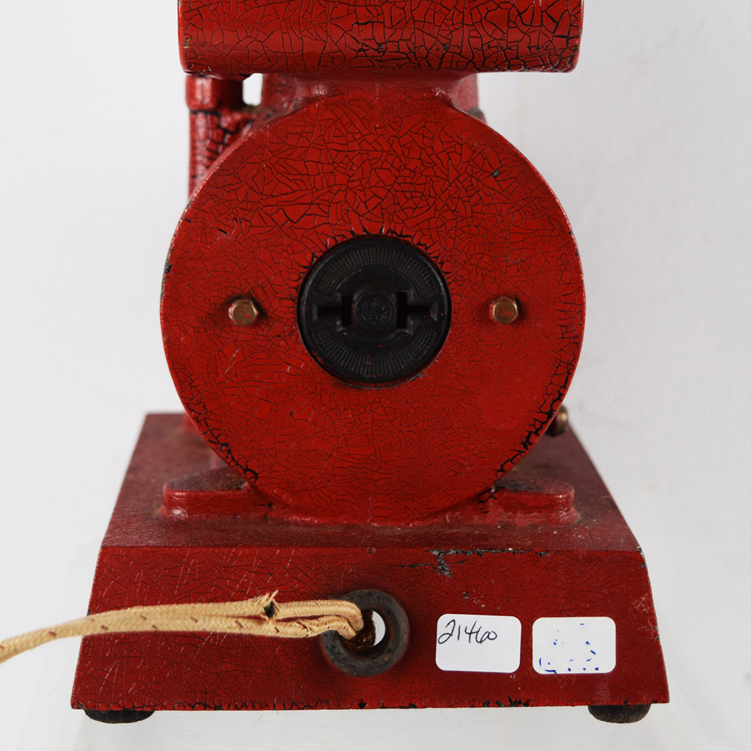 This rare replica model 850 gas engine generator is a salesman’s sample designed to show prospective customers exactly what their farm could look like with electric power. During an era when many rural farms had no electricity, salesmen used these working models to demonstrate lighting and electrical appliances. Compact and durable, the generator could be started outside and brought inside to illuminate the kitchen table—often impressing farmers by powering a light bulb or even brewing coffee. The sample features its original red “alligator” paint and measures 10.25 inches tall, 6 inches wide, and 5.5 inches deep, including the red bulb. The pull chain on the front is missing, but it remains operable by pulling on the end. The 1916-era cord is original, frayed, and not tested due to insulation loss. This is a rare find and an excellent addition to any collection. 21460-QTR