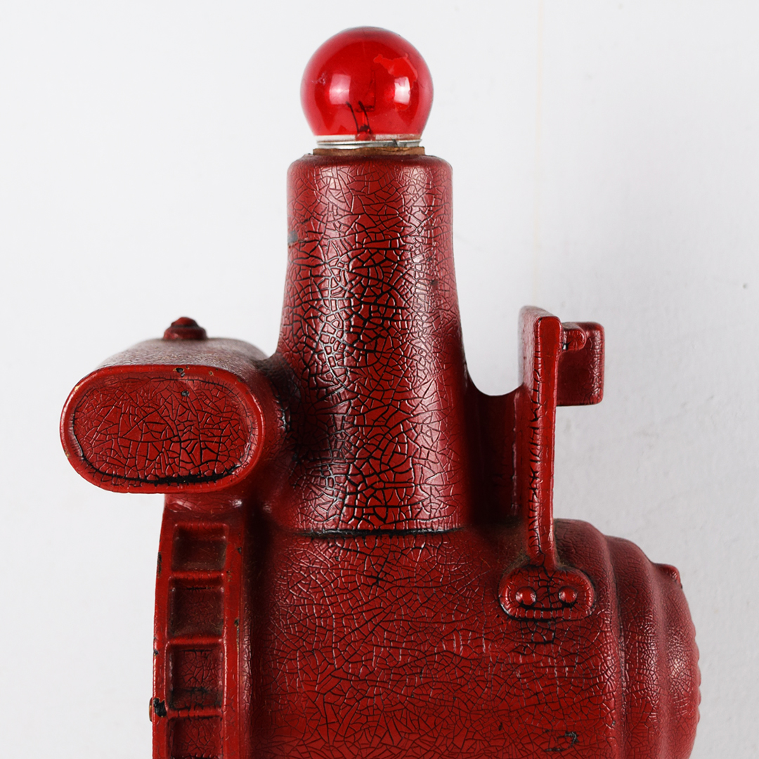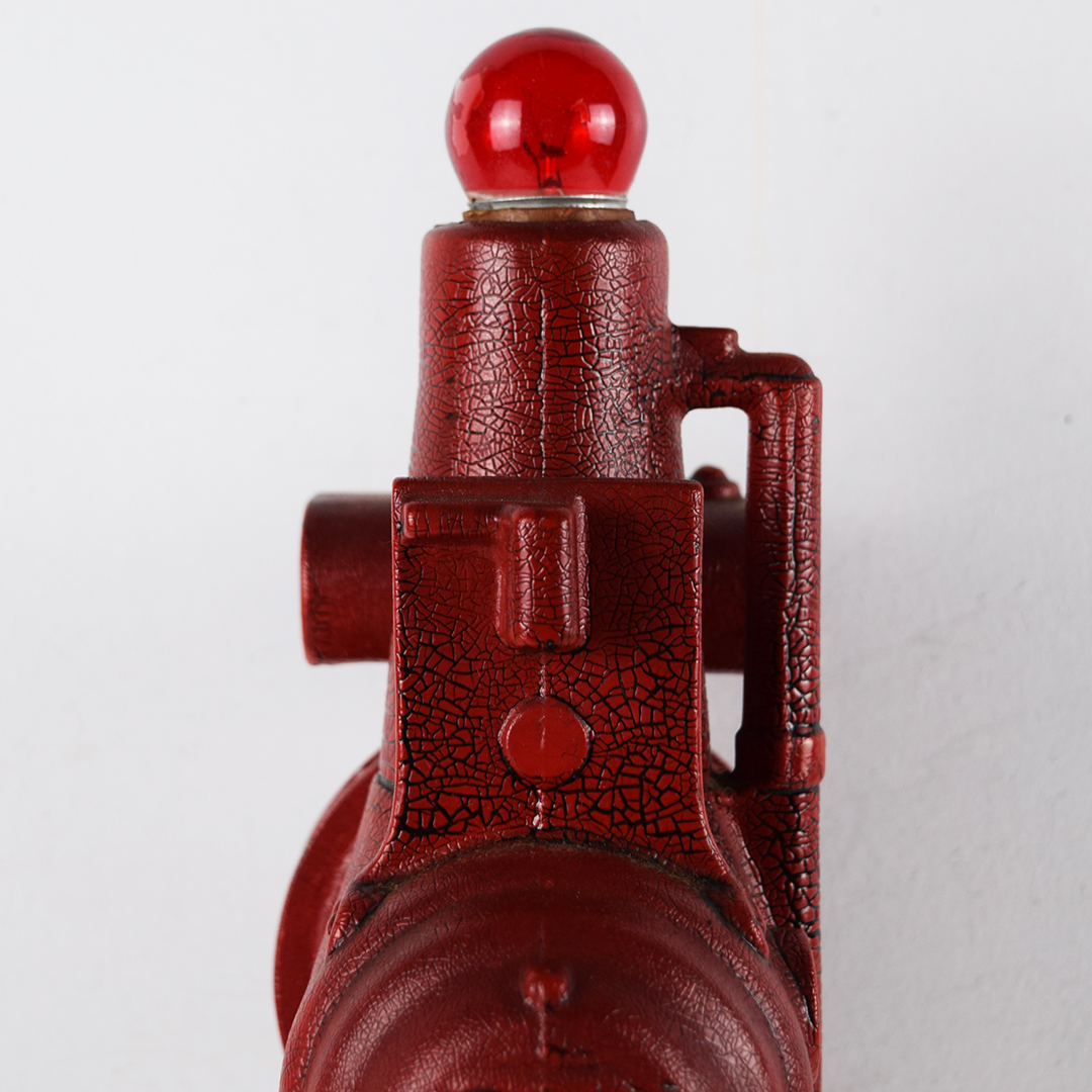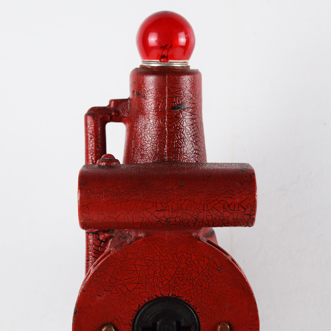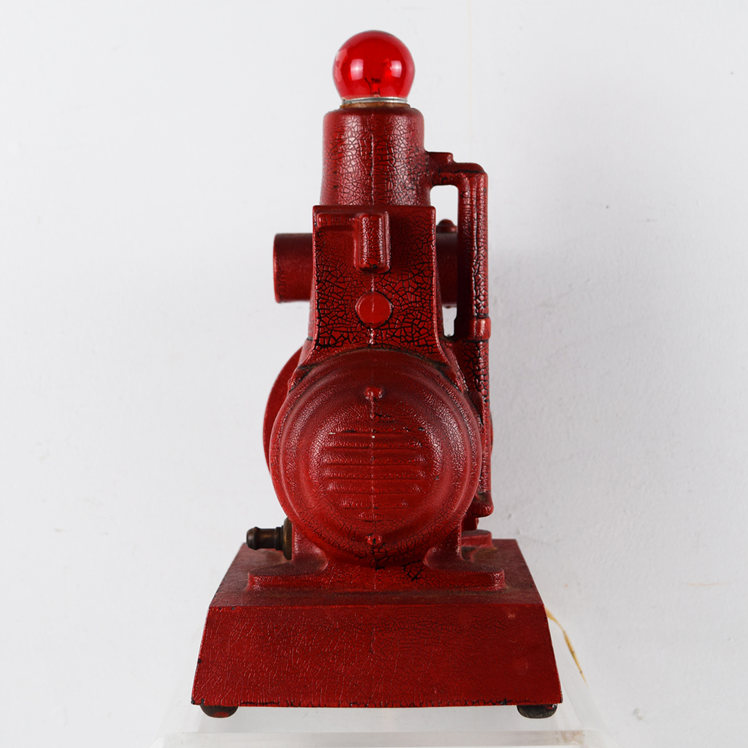 This rare replica model 850 gas engine generator is a salesman’s sample designed to show prospective customers exactly what their farm could look like with electric power. During an era when many rural farms had no electricity, salesmen used these working models to demonstrate lighting and electrical appliances. Compact and durable, the generator could be started outside and brought inside to illuminate the kitchen table—often impressing farmers by powering a light bulb or even brewing coffee. The sample features its original red “alligator” paint and measures 10.25 inches tall, 6 inches wide, and 5.5 inches deep, including the red bulb. The pull chain on the front is missing, but it remains operable by pulling on the end. The 1916-era cord is original, frayed, and not tested due to insulation loss. This is a rare find and an excellent addition to any collection. 21460-QTR
