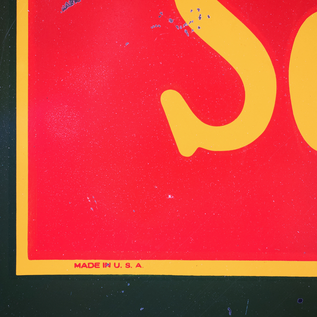 You are looking at a very hard-to-find original Refresh Yourself Coca-Cola tin sign from almost a century ago! This beauty features the iconic Coca-Cola script in the center of the sign, with “Refresh yourself” in cursive above, and “Sold Here Ice Cold” along the bottom. The beautiful red, green, and yellow colors pop off this tin sign, which measures 28.5 inches tall by 29.5 inches wide. Typical age-related marks are in the red background, with a larger presence in the lower left corner. Some paint loss is also along the outer edge, with some minor bends in the tin. The colors are intense on this piece, as is the gloss. We have added a nice frame to this rare and vital piece of history, making it easy for you to display it in your collection. 21415-QWPP