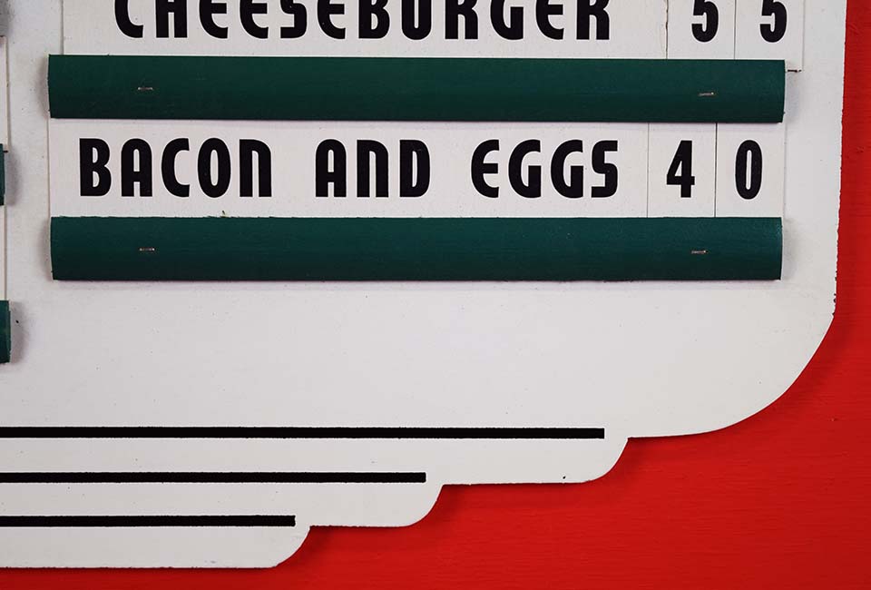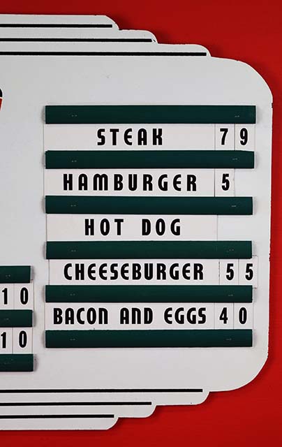If you love beautiful signs, you must look at this amazing piece that just arrived! It appears to be new old stock with the original paper menu items and prices. The green wood strips hold all the words and prices nicely for customers to see. The 7UP logo is painted on the white background and is colorful and vibrant. Just a very few small chips can be seen around the outer edge of this super nice piece that will excite any collector. Make it yours today! 20079-RTP