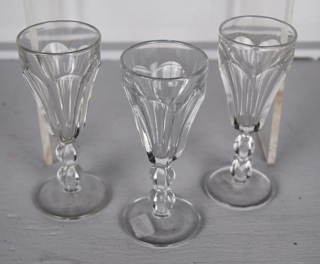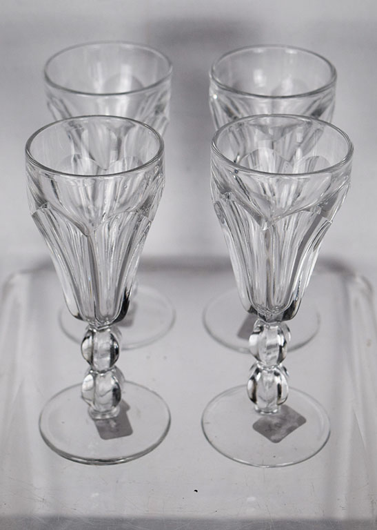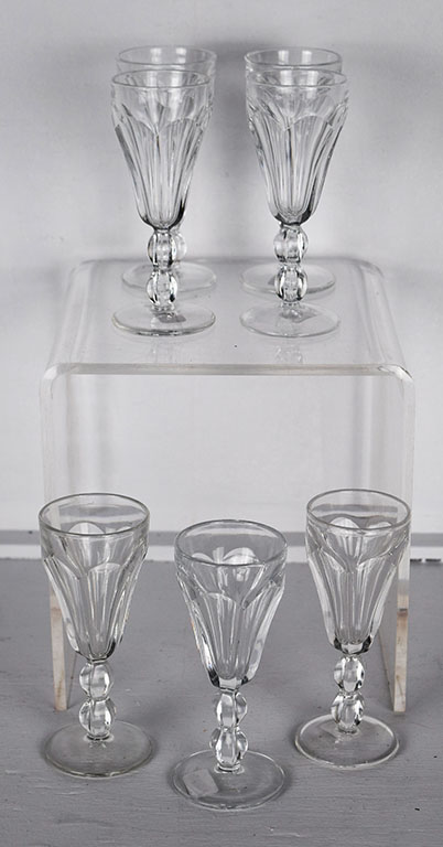 These are nice small heavy Heisey based child size or a sip of wine size for your cupboard. There are seven of these nice heavy Colonial Panel Goblet Glasses, all mint and ready to display. These are 4.75”, with 2.25” base and 2.5” top diameter. 2070-UP