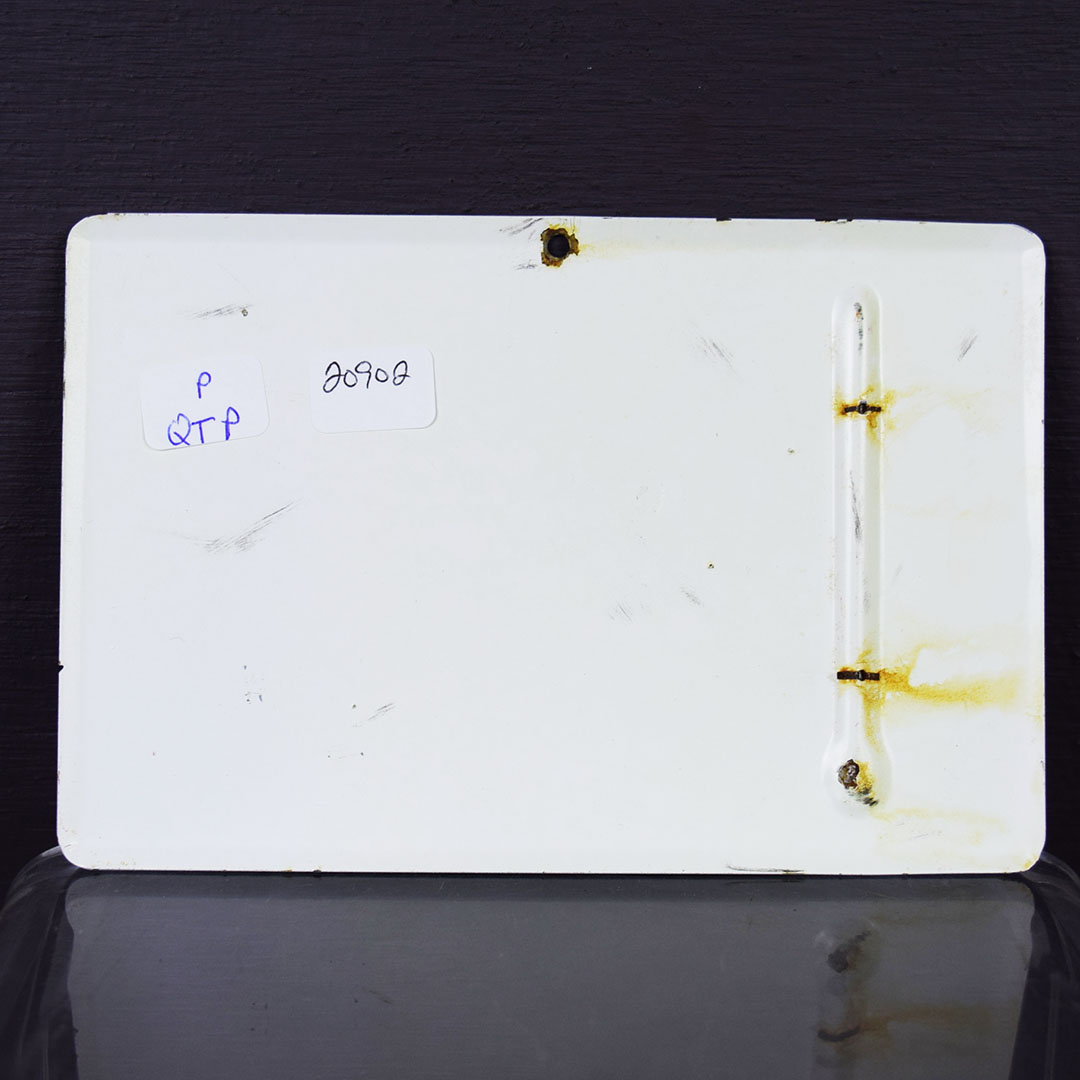 Small but colorful, this sharp Beck’s Hybrids thermometer is stamped metal and measures four inches tall by six inches long. It dates from the 1950s and features a corn cob and stalks in the background. Some chips are around the top mounting hole, and the face has a few fine marks on the surface. Some slight yellowing appears on the white background. With great colors and the right size, this thermometer will surely fit anywhere in your collection! 20902-QTP