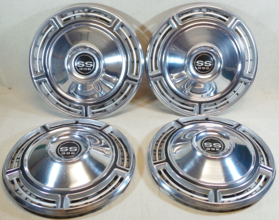 Automotive manufacturers always seemed to do subtle changes every year to vehicles to make them just a bit different than the previous year. One of the easiest changes was hubcap design, as seen in this set of 1968 Chevrolet SS hubcaps. These are marked “SS 396” in the center of the metal hubcap with black trim around the outside. These hubcaps are designed to fit on factory fourteen inch metal wheels on Chevrolet Chevelle and Camaro. These vintage hubcaps have some minor nicks and scratches, but they are suitable for you to install on your classic and enjoy. 18279