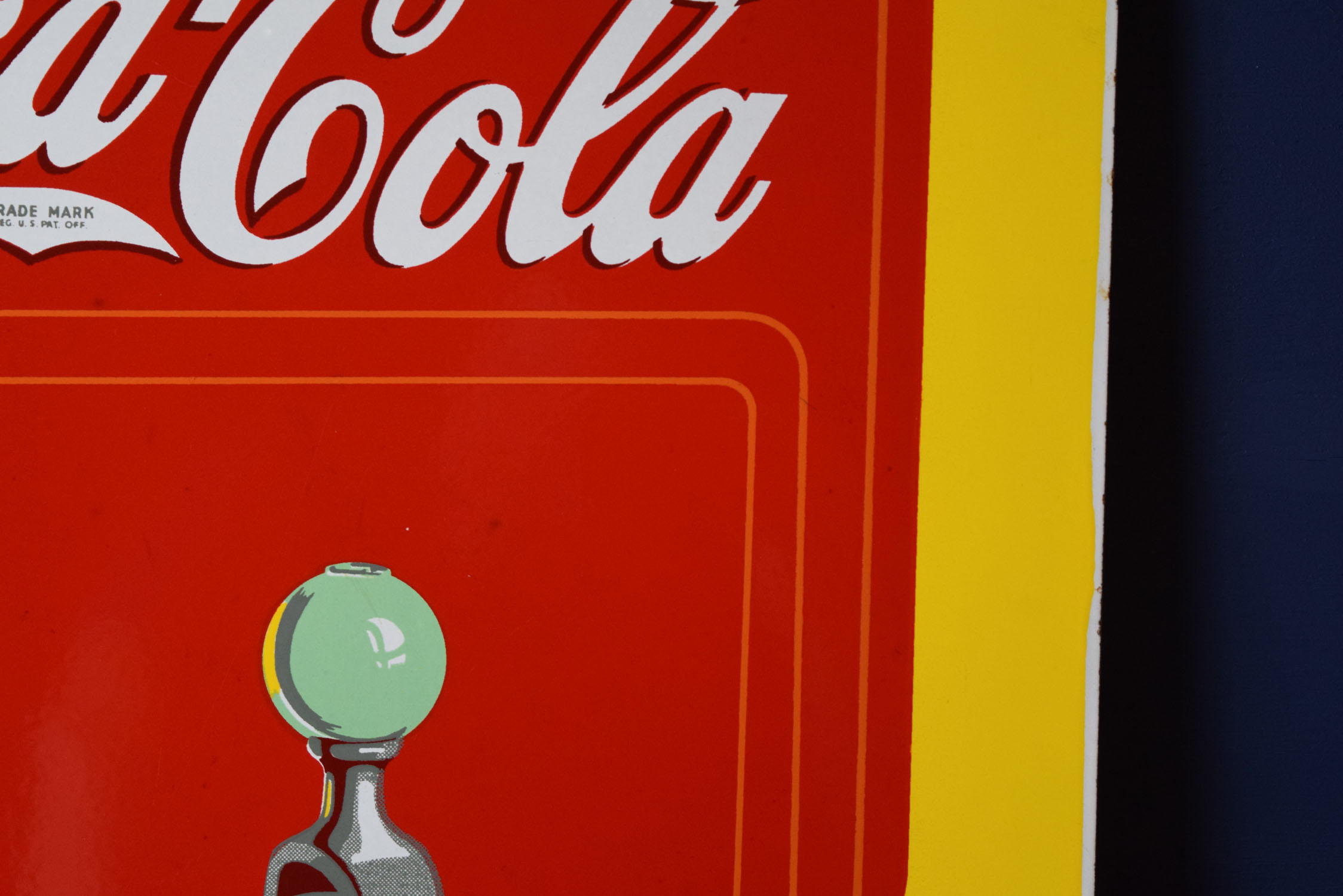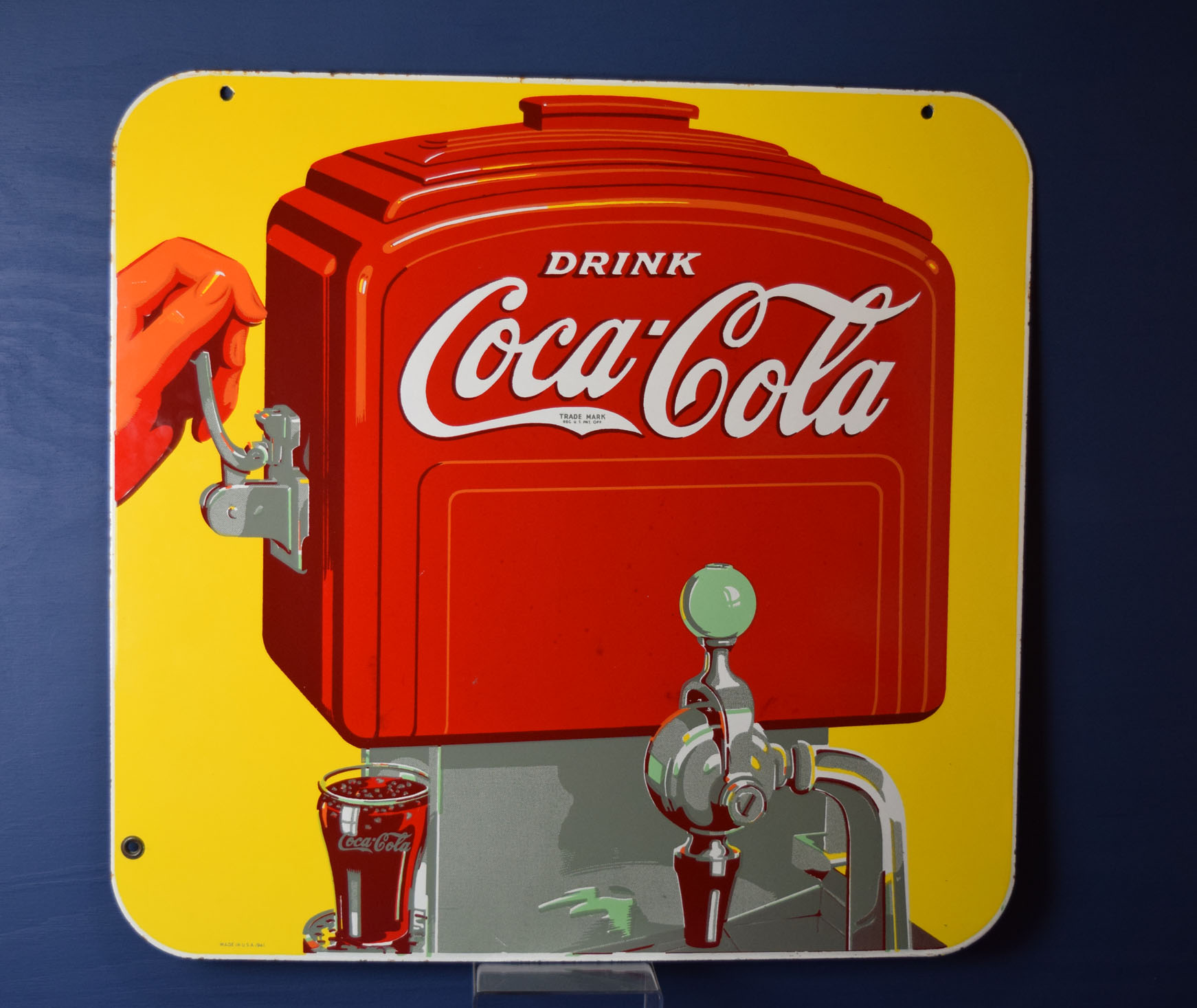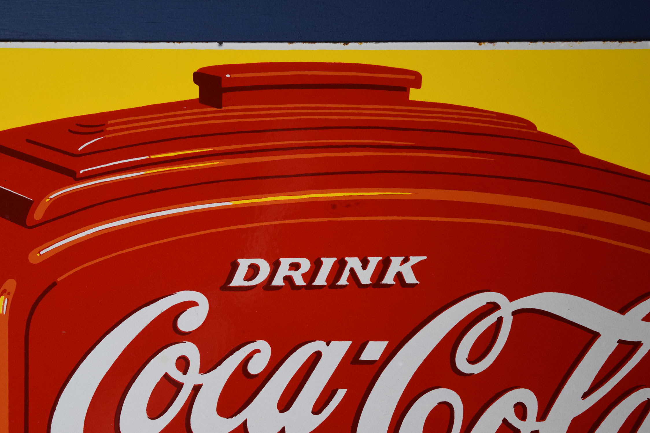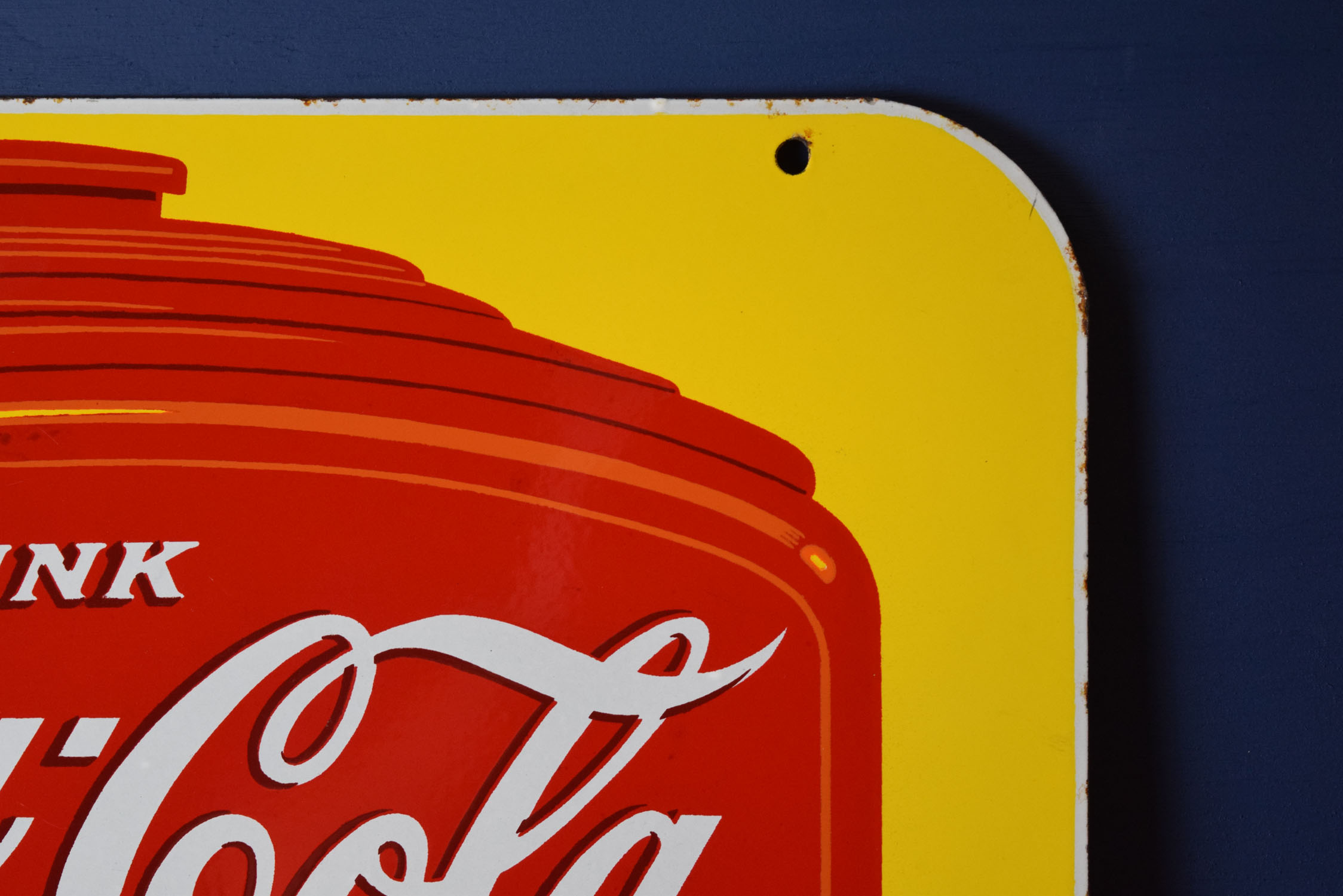 Coca Cola Porcelain Double Sided Fountain Dispenser Sign