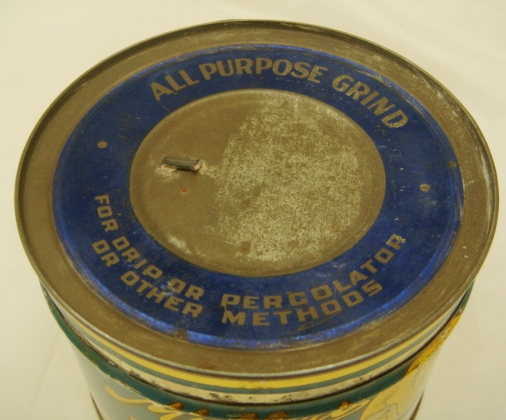 Great piece to add to any kitchen shelf or country store shelf. This circa 1930’s key wind tin once held a 1 lb. of Nut-Brown Brand “Just-Rite” Coffee, packed by E. B. Millar & Co. in Chicago and Denver. It has an image of a pretty young lady enjoying a cup of steaming coffee on the front, next to the “Nut-Brown” emblem. On the side it is inscribed “Pearled, a rich blend of finest quality coffees.” It is in excellent condition with some light scratches and wear. 6345-11WP