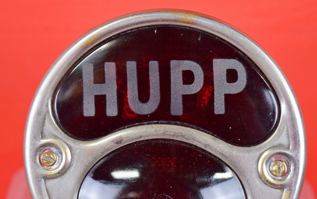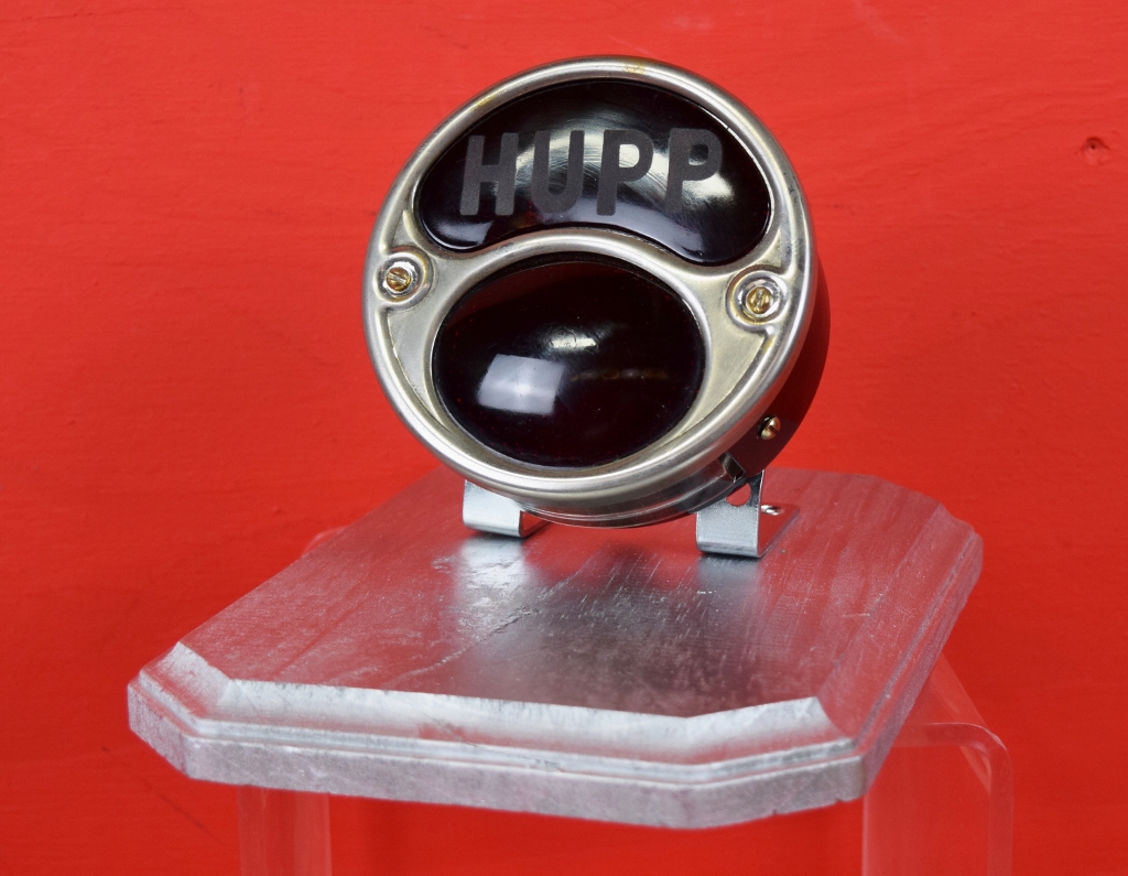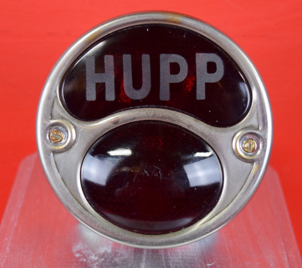 Dating from the 1930’s, this great looking Hupmobile tail light has the original housing with correct etched glass lens and has been mounted on a wooden base. The lens is in amazing shape with sharp etched “HUPP” letters on the top. Under close inspection, you can see some light scratches on the lens, but it is free of cracks and chips. Great piece to display, or use on your Hupmobile! 20045-OP