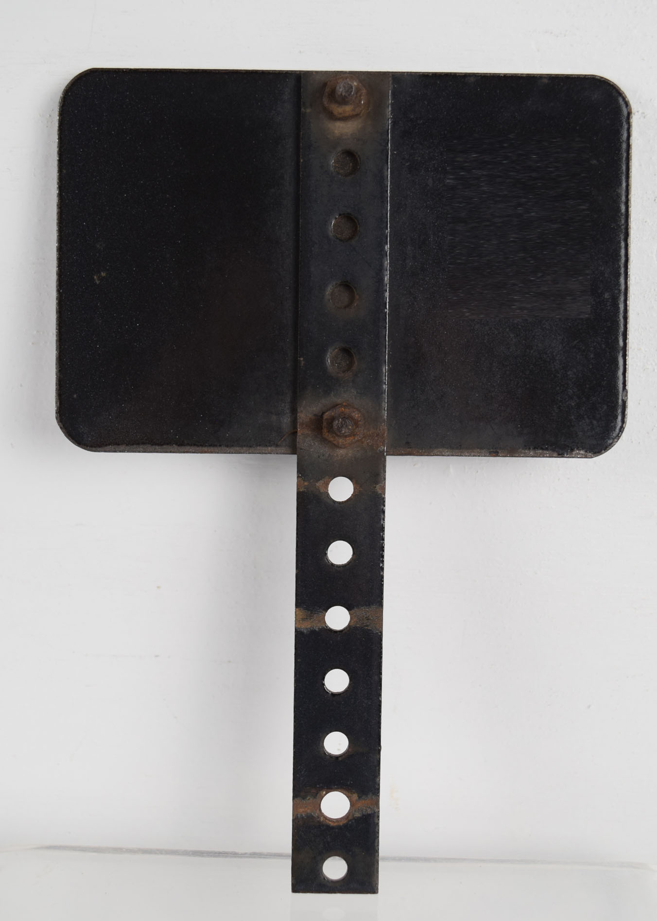 Super small at three inches by five inches, this American Red Cross porcelain sign will fit nicely in a showcase or on a shelf. It has some smaller chips on the face of the porcelain, and is mounted to a metal tab. Some tarnish can be seen around the screw heads as well. A few chips in the top edge, but the gloss is great and it shows nicely. With the super nice size and the metal tab, this Emergency First Aid was probably a automobile tag topper from the 1940’s to notify other motorists the driver would help if needed. 19513-QPP