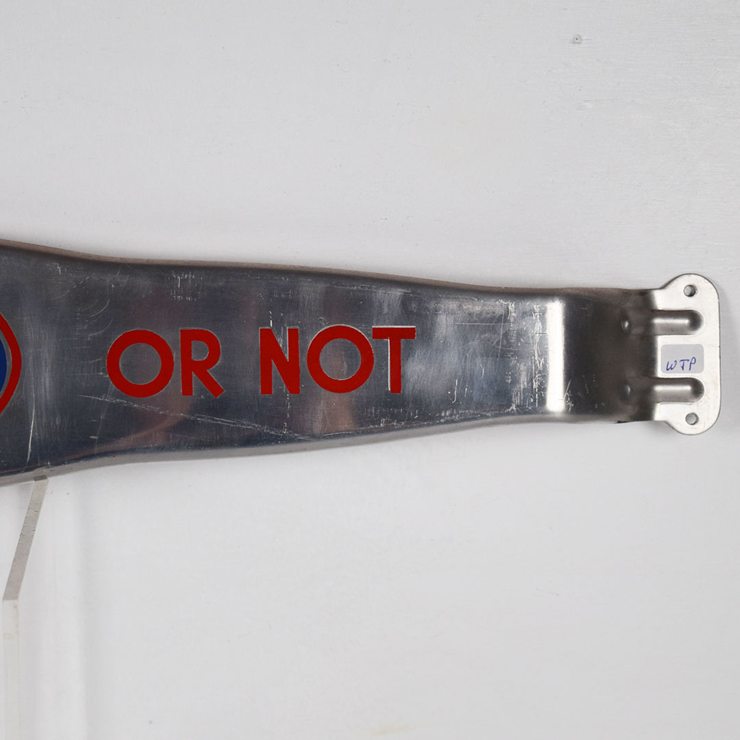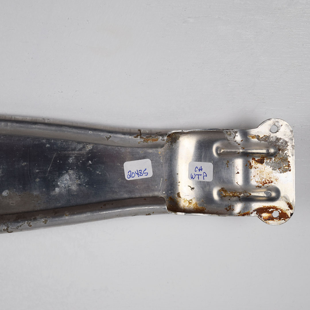 Dating from the 1940s, this great looking Grapette soda door push is made of lightweight aluminum, and features front and back printing! It is not adjustable like other door pushes we see, it measures thirty inches wide, with nice red and blue colors on the front. All of the lettering an logos look great, with just some minor wear in the blue oval. The back reads “Thank You Call Again” in black letters. Some marks can be seen on the aluminum finish from use, but do not detract from the beauty of this piece. Super cool piece from the World War II era! 20485-WTP