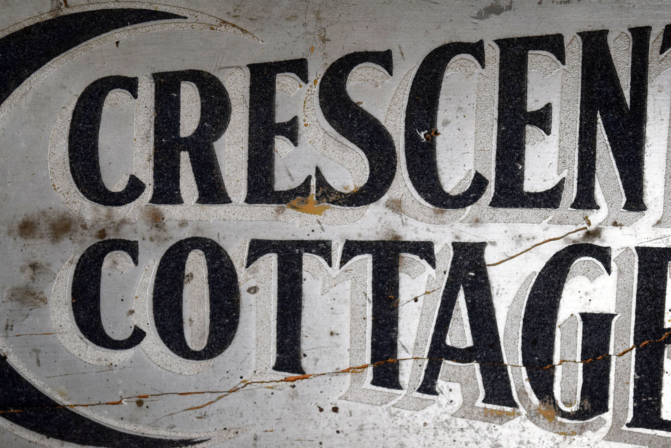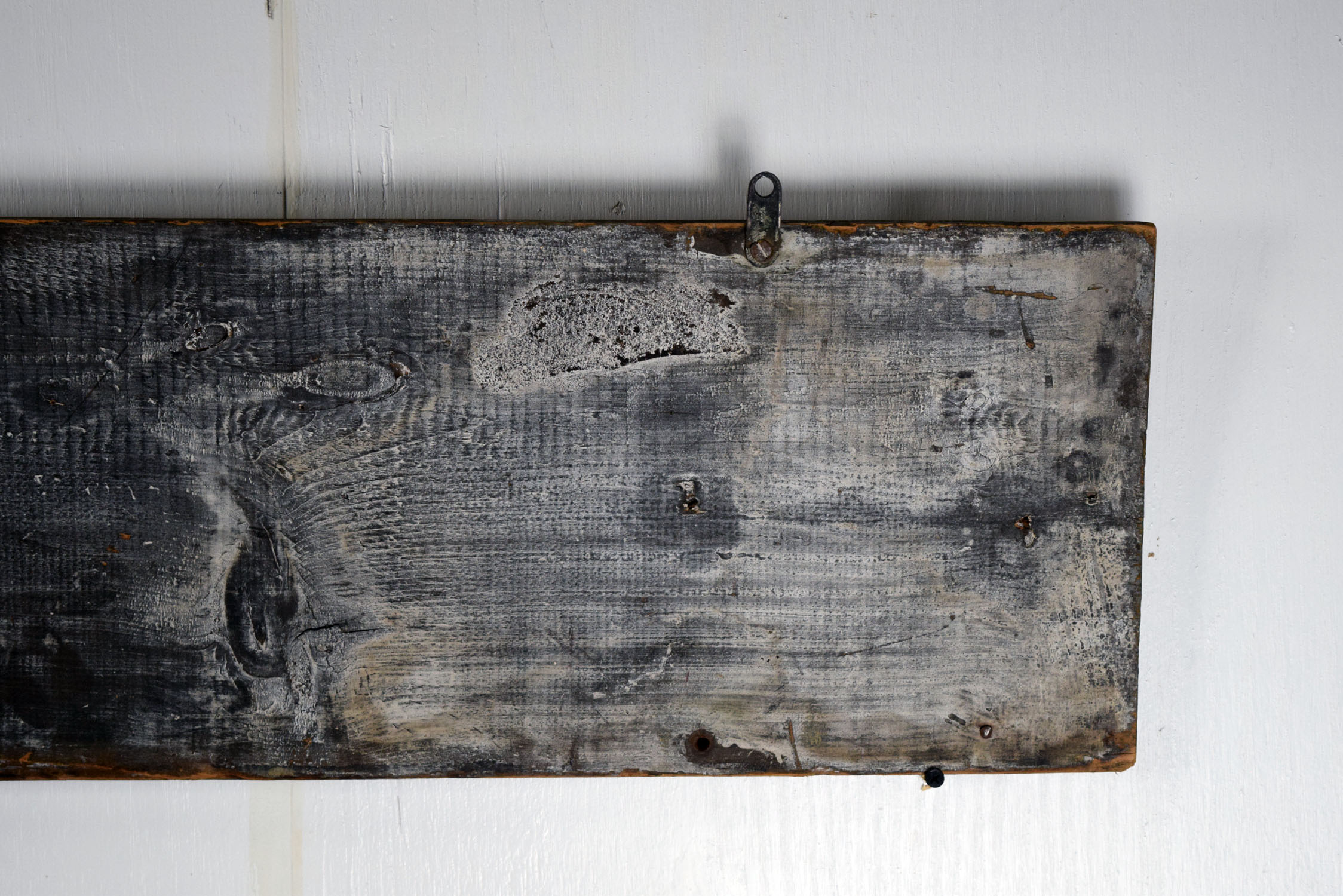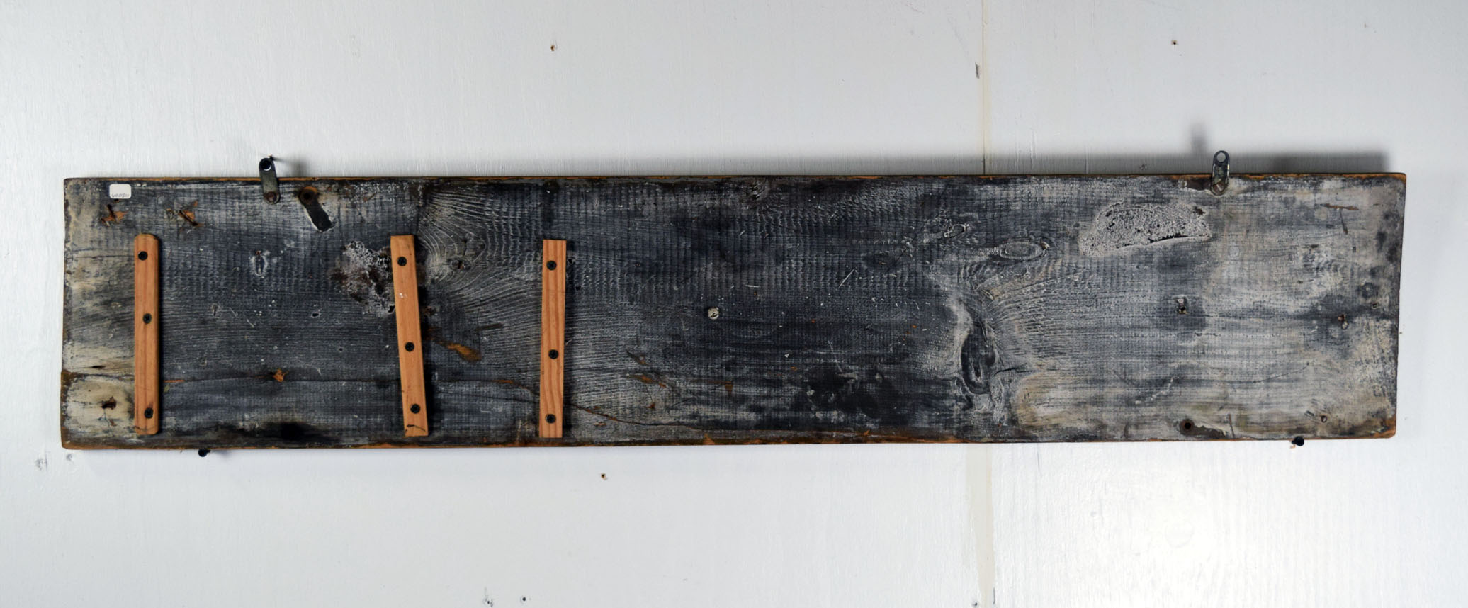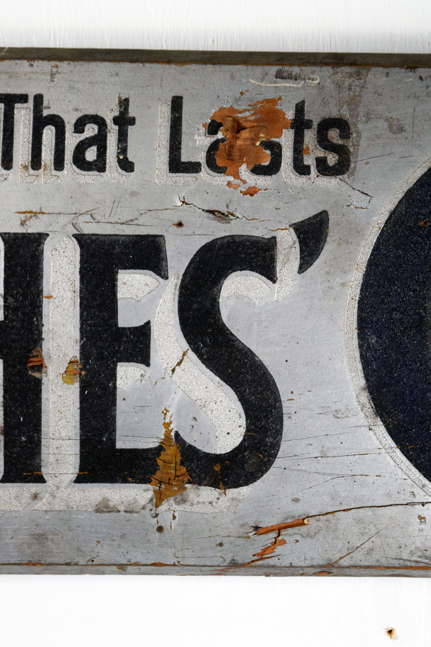 Before signs had lights, they relied on reflective paint for customers to see their message at night. Smaltz paint had tiny amounts of glass in the paint to enable it to reflect the light from oncoming automobile headlights. This Hughes’ Crescent Cottage Paint horizontal wooden sign features Smaltz paint on the letters with some great vintage patina. Some minor chips with paint loss can be seen on the face of this rare sign, along with some cracking on the wood itself. The cracking has been repaired by adding small pieces of wood on the back side of the sign. Great piece of history to have in your collection. 19866-600801