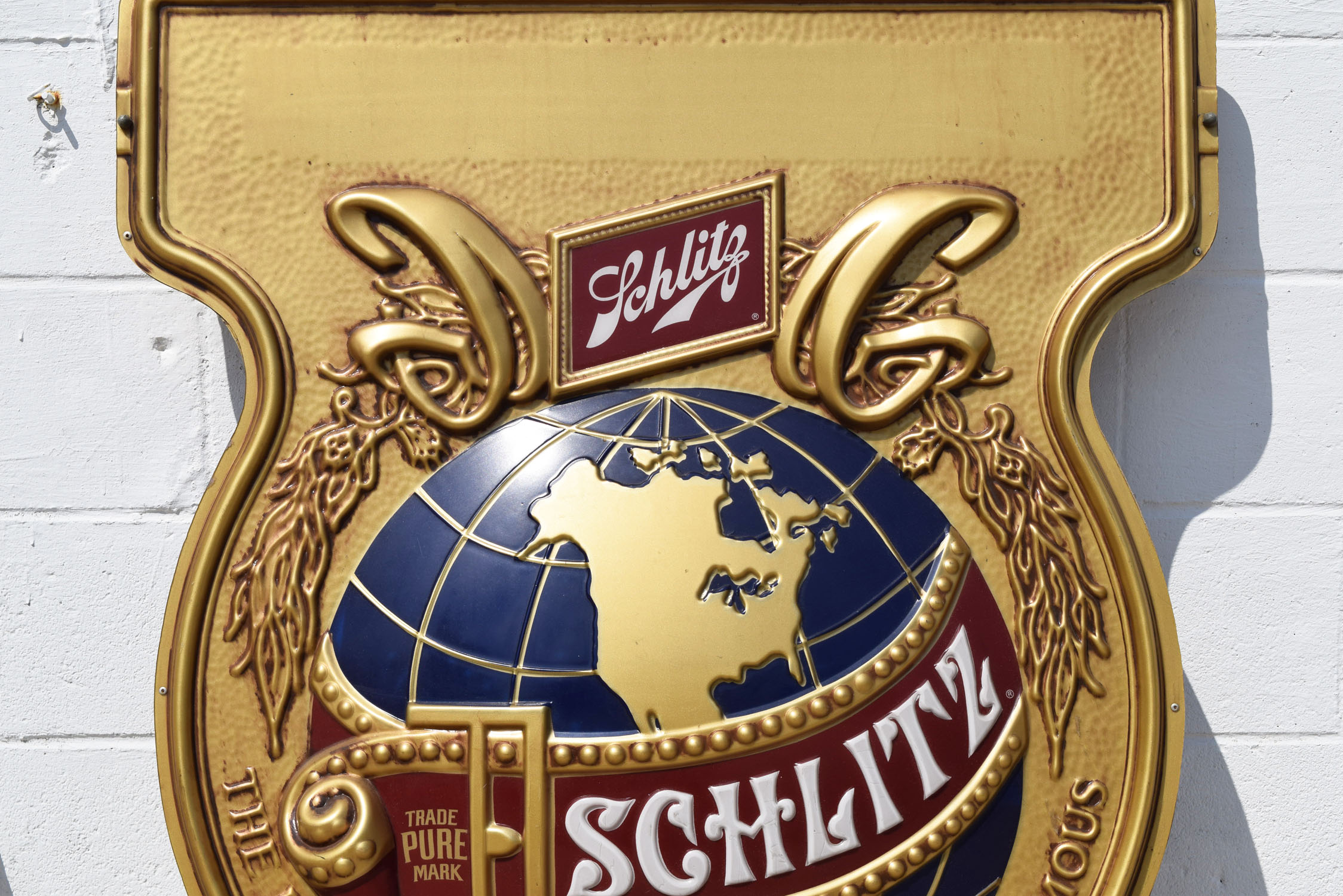 If you love Schlitz Beer, we have got a sign for you! This large Lexan sign would have hung outside of your local bar in the 1960’s to 1970’s and would have had the bar name at the top. It measures forty-eight inches tall by thirty-six inches wide and has metal “J” hooks to allow it to hang from a metal pole. The sign is in great shape with some minor wear on the Lexan body. The privilege panel is blank, so you can leave it as is, or personalize it with ease. We would be happy to deliver this to you on one of our show road trips! This is an oversized shippable item. Please contact us for shipping info. 19730-QWPP