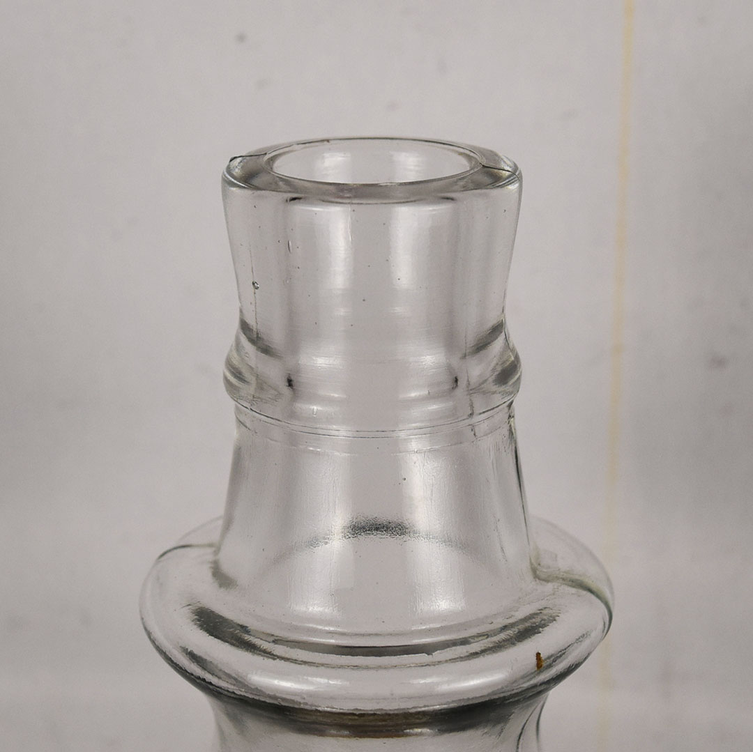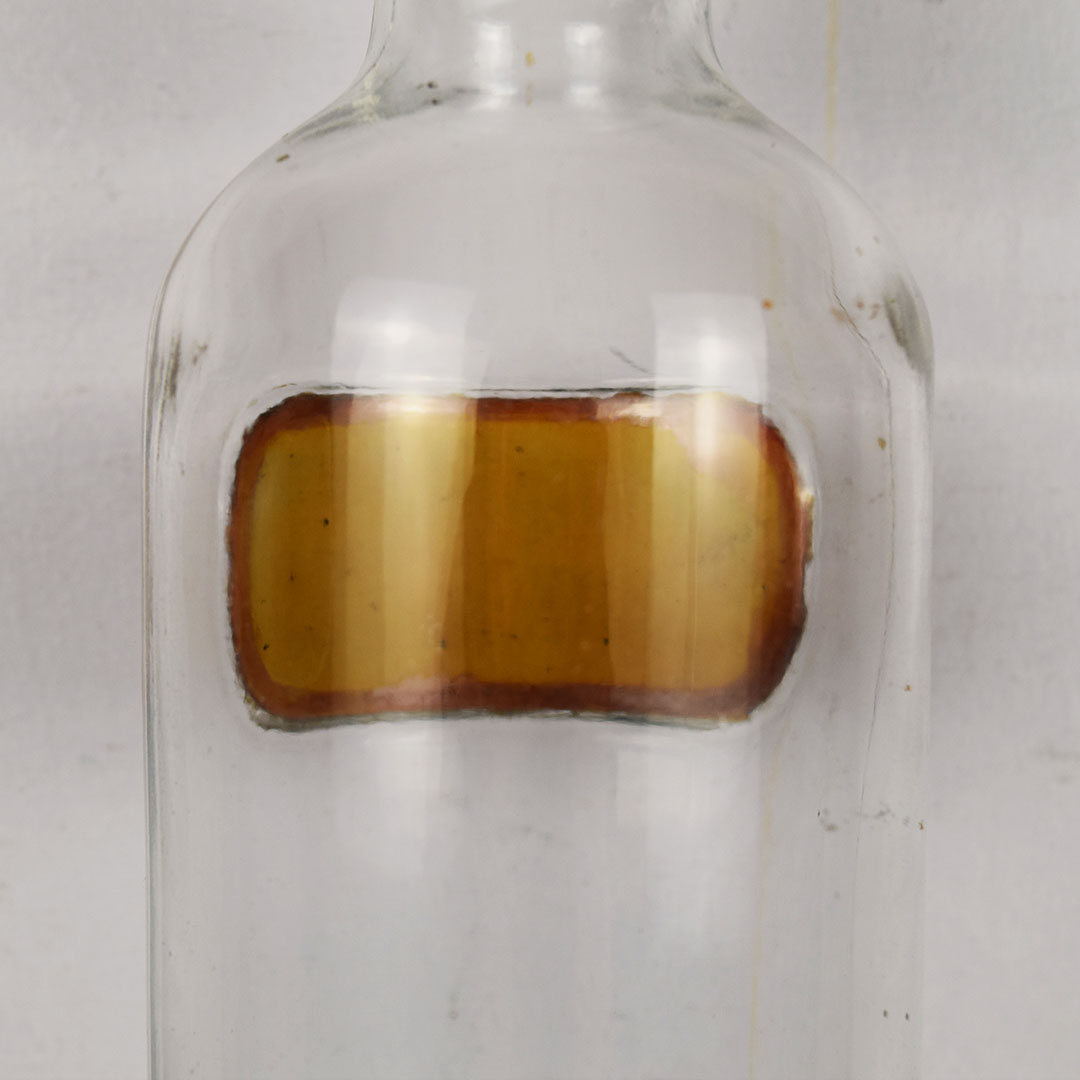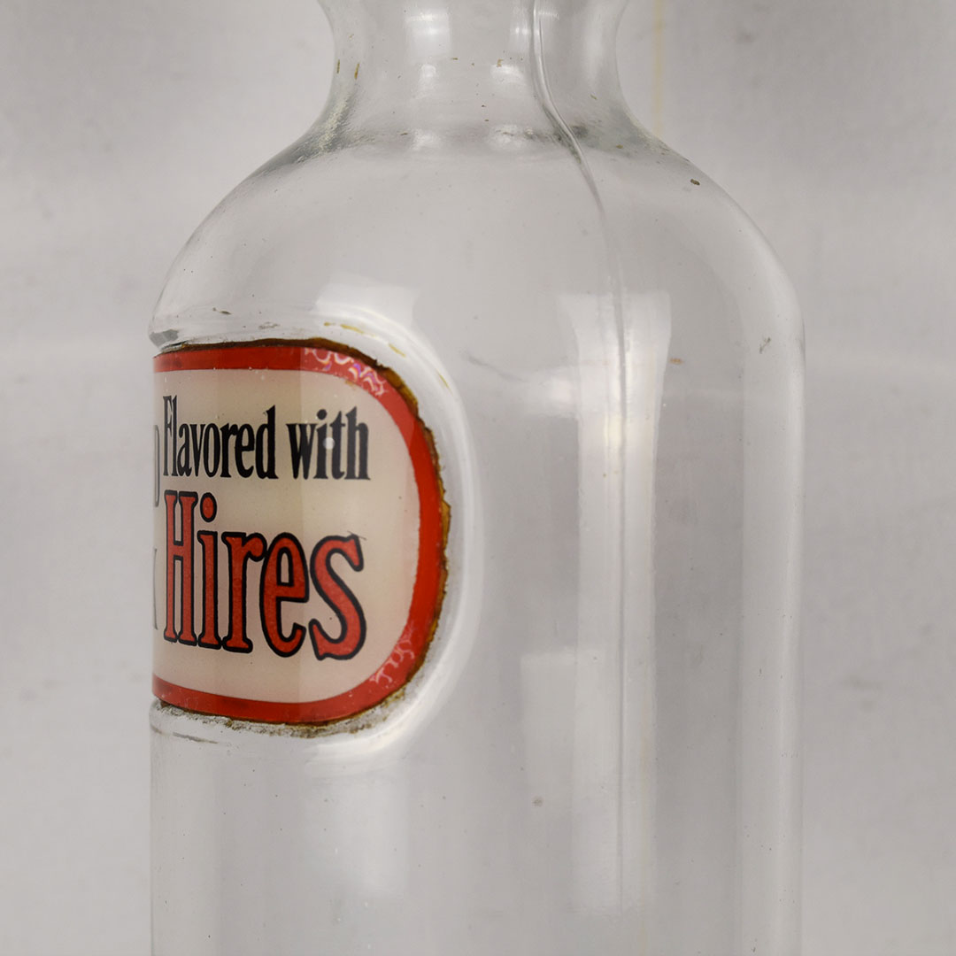 A very rare and excellent example, this soda fountain syrup bottle is from the early 1900s. It is a label under glass syrup bottle, reading “Try Malted Milk Flavored with Hires”. The glass syrup bottle measures 11 7/8 inches tall by 3 1/4 inches wide at the base. It is free of chips and cracks and has an aluminum cap to complete the bottle. The base of the bottle shows typical roughness from its production. 21552-TRP