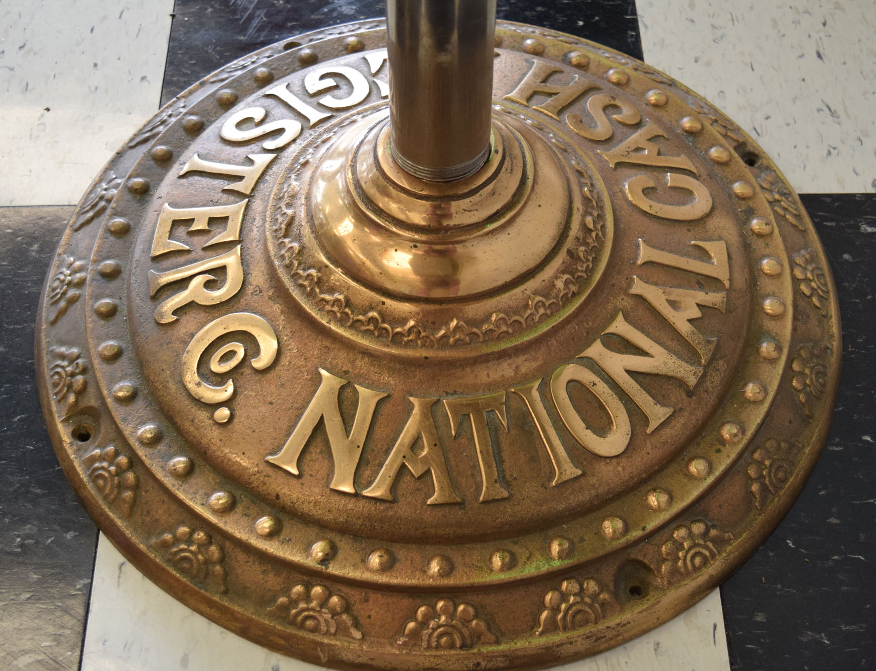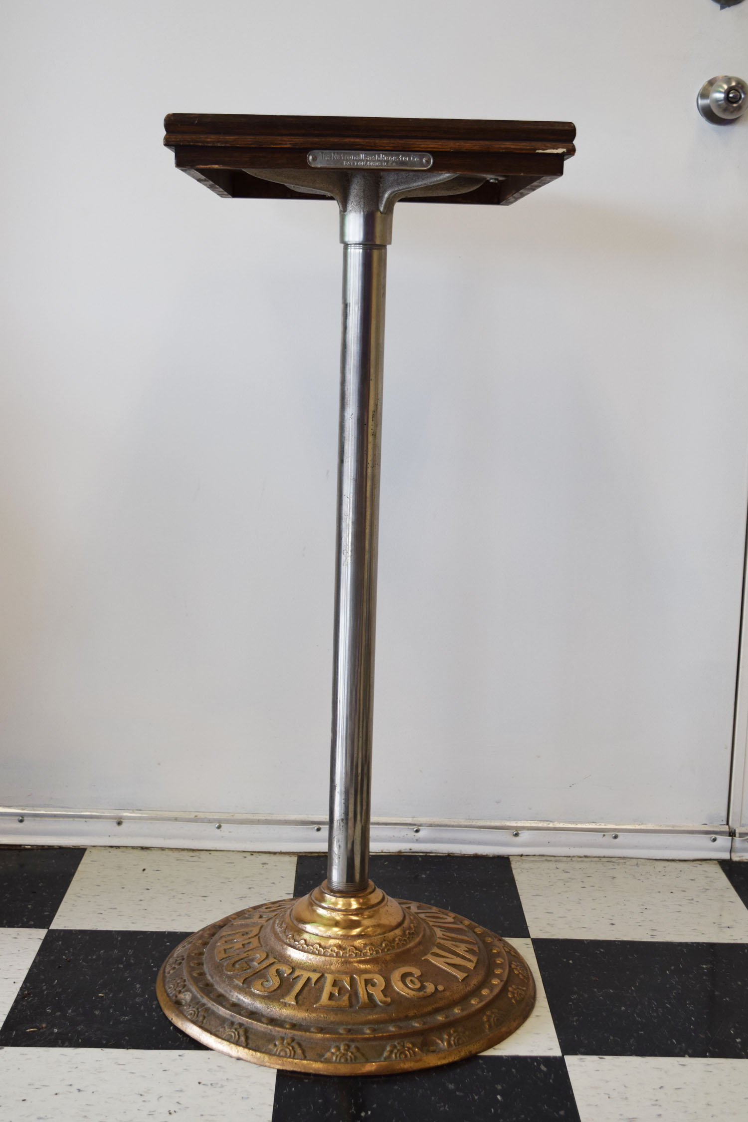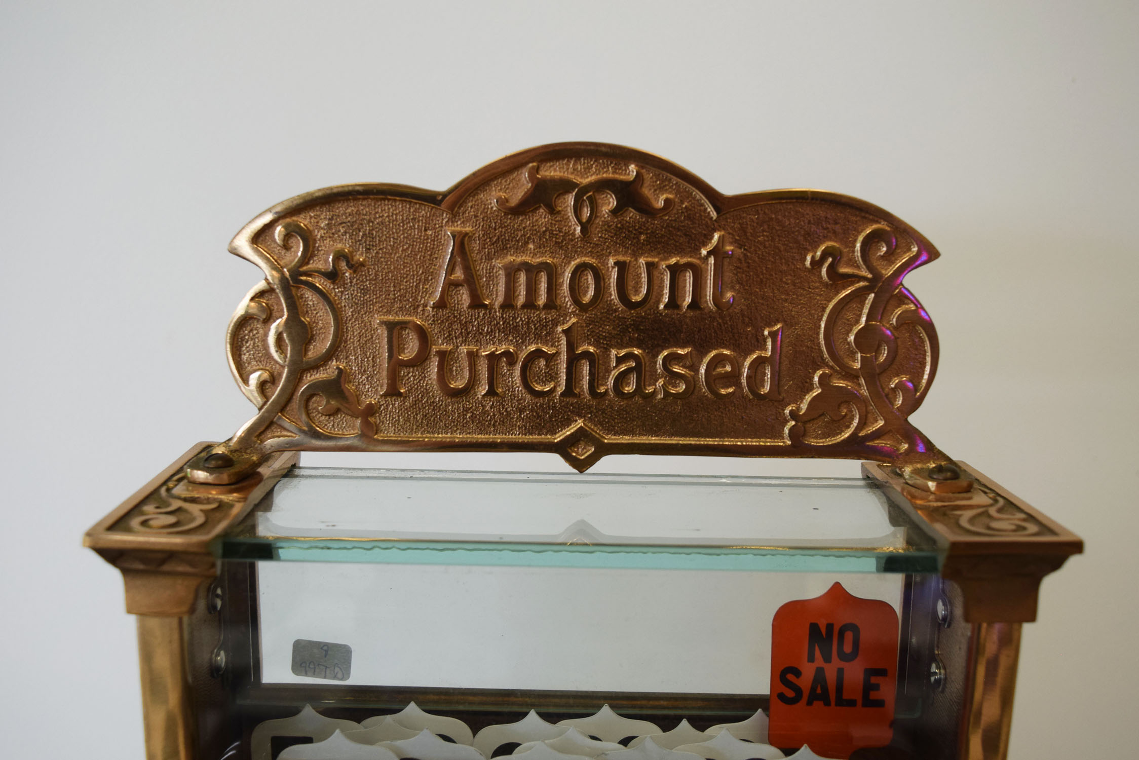 A staple in many general stores in the early 1900’s, this National Cash Register is a model 251 and has the Louisiana state name in the front lift door. We do not have the key, but the lift door is unlocked and you can see the numbers inside. It works as it should, but the keys stick at times. The gold is amazing on this rare piece, and this register has a rare addition as well! The original stand that it sits on is made for this machine, and complete with a brass base that is complete with the National Cash Register logo on it. This item is larger than UPS will allow. Please contact us for shipping or delivery quote. 19740-QTPP