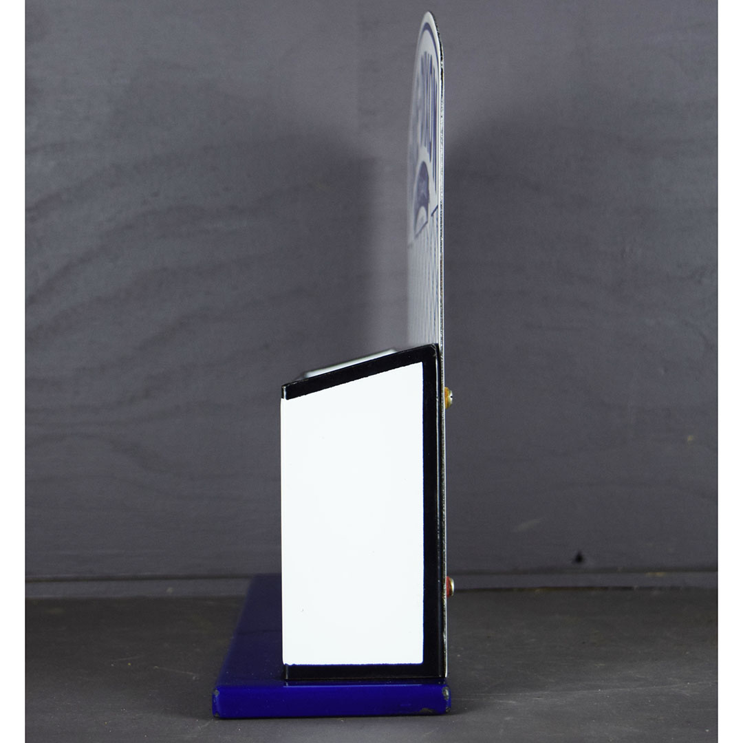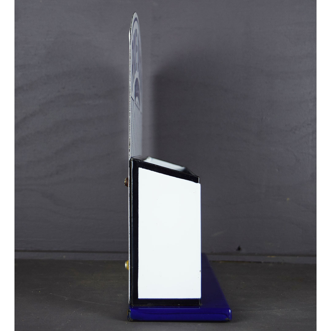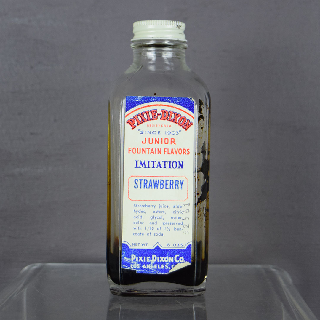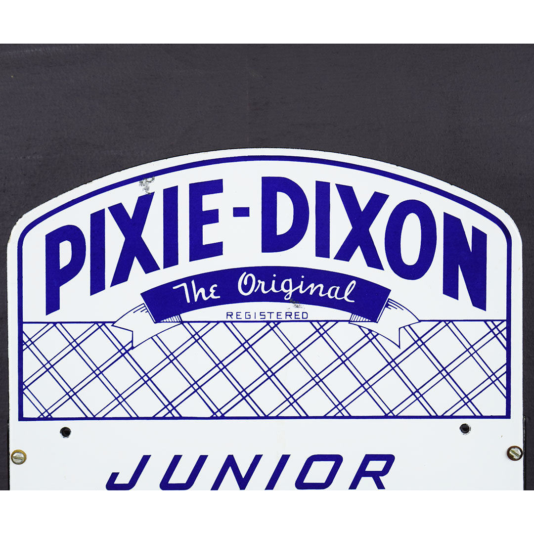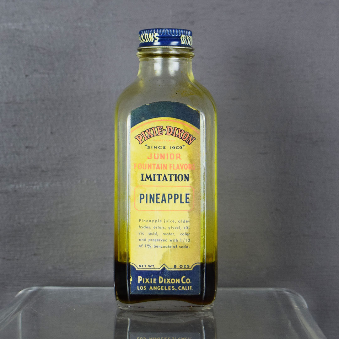 This adorable Pixie Dixon syrup dispenser dates from the 1940s and allows your local soda fountain jerk to add one of six syrups to your freshly made soda or add some flavor to your ice cream! The porcelain display features sharp colors with cutouts on the dispenser, allowing workers to see which flavors are available anytime. The square glass bottles feature paper labels on the front from the Pixie-Dixon factory in Los Angeles, California. Three bottles have plastic dispensers, and the others have metal screw-on caps. The paper labels have wear on them based on age and use. Some edge chipping around the outer edges and a small chip on the left corner are the only issues on the dispenser side of this rare piece. The back has some slight staining and two places in the porcelain finish on the top half of the back. It is a great display piece that will add a nice touch to your soda fountain! 20971-QQTT