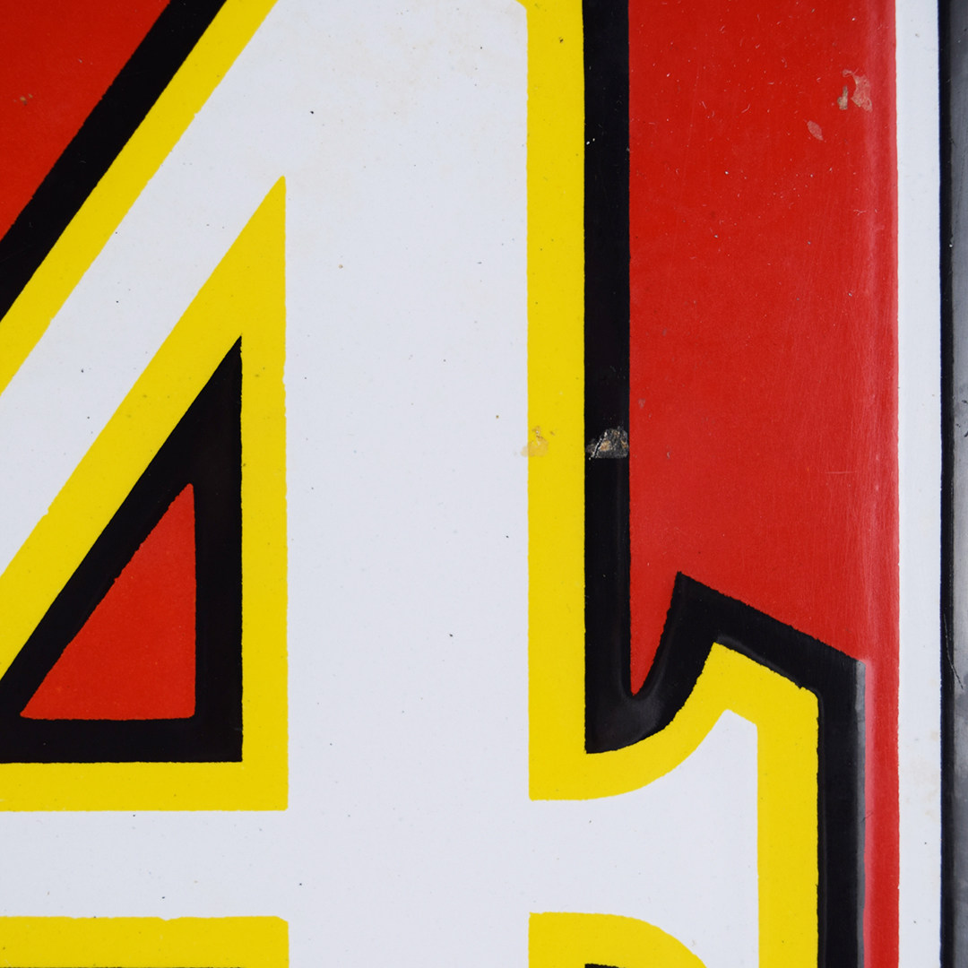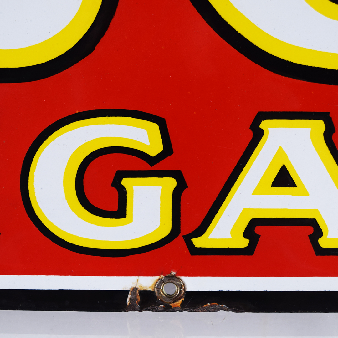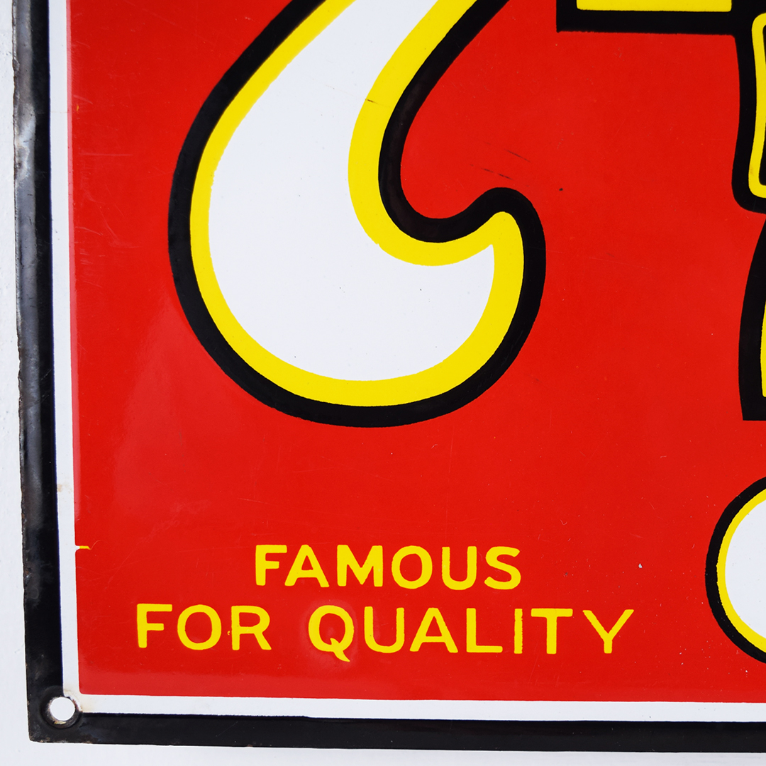 The iconic 7-20-4 name for R. G. Sullivan’s cigars comes straight from the original factory’s address—724 Elm Street in bustling Manchester, New Hampshire. Launched in 1874, this brand quickly soared to become one of the largest cigar makers, thriving right up until its doors closed in 1963. You’re looking at a dazzling porcelain sign from the roaring 1920s, measuring an impressive 10.5 inches tall by 23 inches wide. This vibrant piece shines with sharp gloss across its field, accented by a single tiny chip on the edge of the number 4. You’ll spot a touch of porcelain loss in the upper and lower right corners, plus around the bottom-middle grommet—proof of its vintage charm. Like many early porcelain signs, there’s classic outer-edge wear and very minor loss, attesting to its journey through time. Two sturdy original grommets remain at the top and bottom center mounting holes. This is a stunning piece of cigar history you’ll be thrilled to showcase in your collection! 21453-IWT