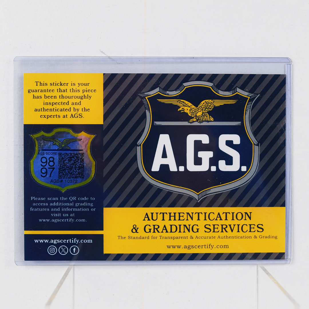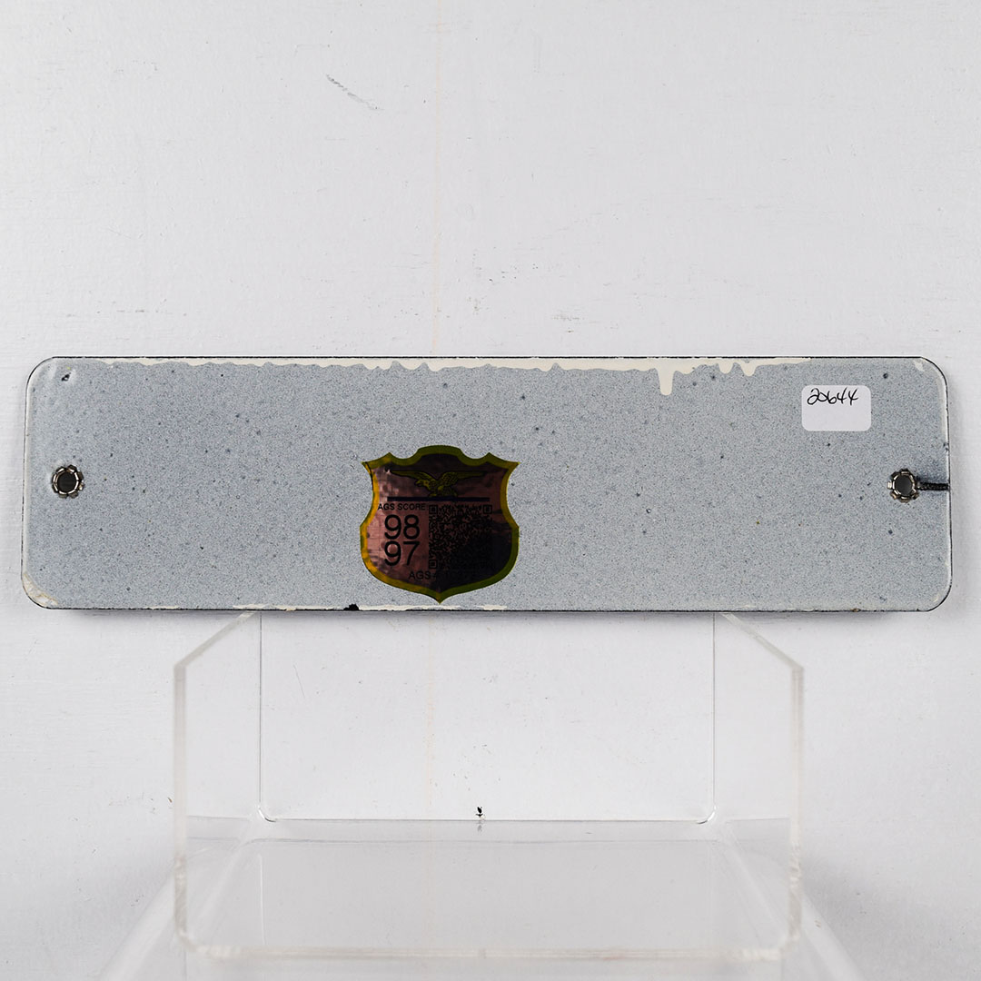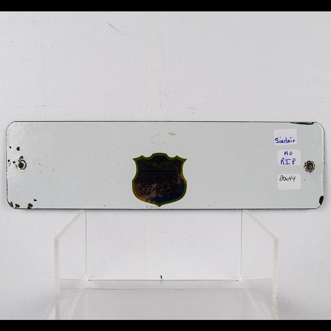 In incredible shape, this beautiful pair of Sinclair porcelain rest room signs have been graded 98 and 97 out of a top score of 100 by the Authentication & Grading Services. The Men sign is graded a 98 and has sharp colors and a shiny gloss with only minimal edge wear, and original mounting grommets. The Ladies sign is graded a 97 with the same sharp colors and shiny gloss. Some minimal edge wear, along with some blemishes around the mounting grommets can be seen. We would guess that this pair is likely a new old stock pair, and would be impossible to upgrade. The AGS certificate is included with your purchase. 20644-RIP