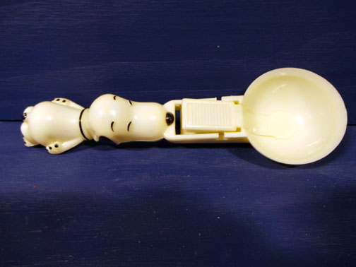 From United Features Syndicate Inc.,this rare vintage piece dates from 1958 – 1966 and was imported from Taiwan. Made of white lightweight plastic with Snoopy as the handle. Nice black details with white plastic and never been used. It is 8.5” long. The white has turned a little with age. It is easily broken, so please do not use, break and send back to me. No returns on this as it is display piece only and not meant to be used for ice cream…as it will break. 2029-T