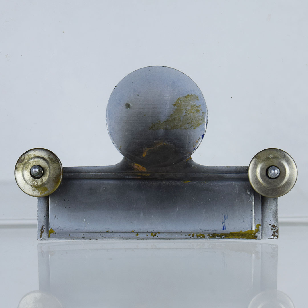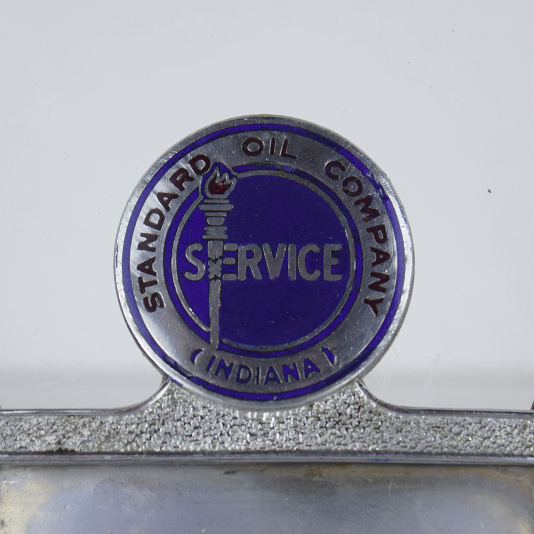 Standard Oil Company issued this hat pin name badge for each employee to wear on their uniform daily. Each employee wrote their name on a small piece of white paper and slid it into this name badge, with a small plastic cover so it did not smear when it got wet. The plastic is no longer in this piece of history, and it has two screwback fasteners to attach nicely to a hat or shirt. The enamel finish on the logo is smooth to the touch, with a small bend in the upper right corner of the rectangle base. We date this piece from the 1920s, and it will look great in your collection. 20825-QPP
