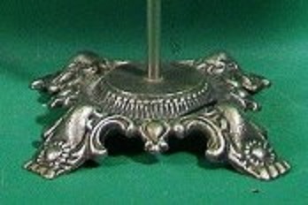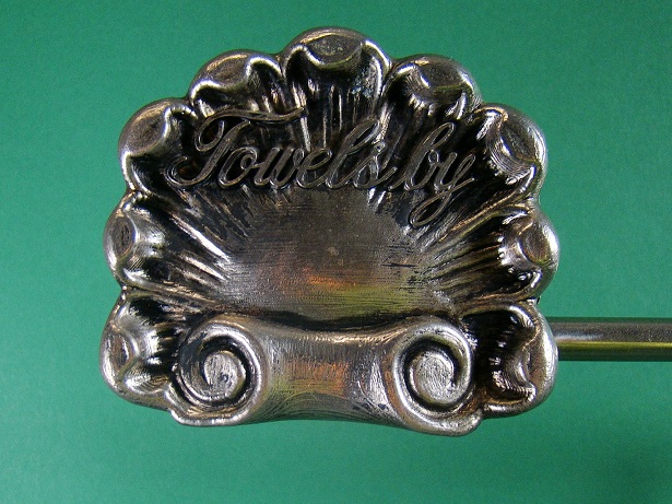 This is perfect for any bathroom and great decorator piece. This chrome display stand was used in store like Macy’s for their expensive designer towels. It dates from the 1950’s or 1960’s and has a “T” shape with a fancy cast base and shell shaped decorations on the ends of the bar, embossed “Towels By Callaway.” The stand measures about twenty-six and a half inches tall by twenty-one inches wide and is in near mint condition. Would be great for a vintage guest bathroom. 9556-51ETR