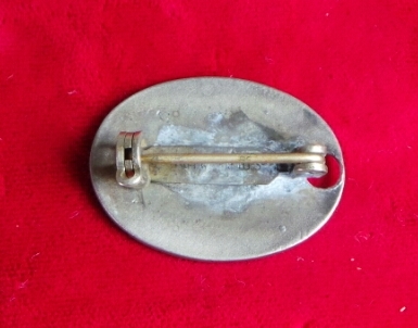 This nickel plated oval pin dates from the 1940’s or 1950’s and was worn by a worker at the Texaco Refinery in Port Arthur, TX. It is embossed “Texaco Port Arthur Works 3643.” The pin measures about one inch tall by one and a quarter inches wide and is in excellent condition. A hole has been drilled in one end, perhaps to hang it from a chain or key ring. 9276-41QP