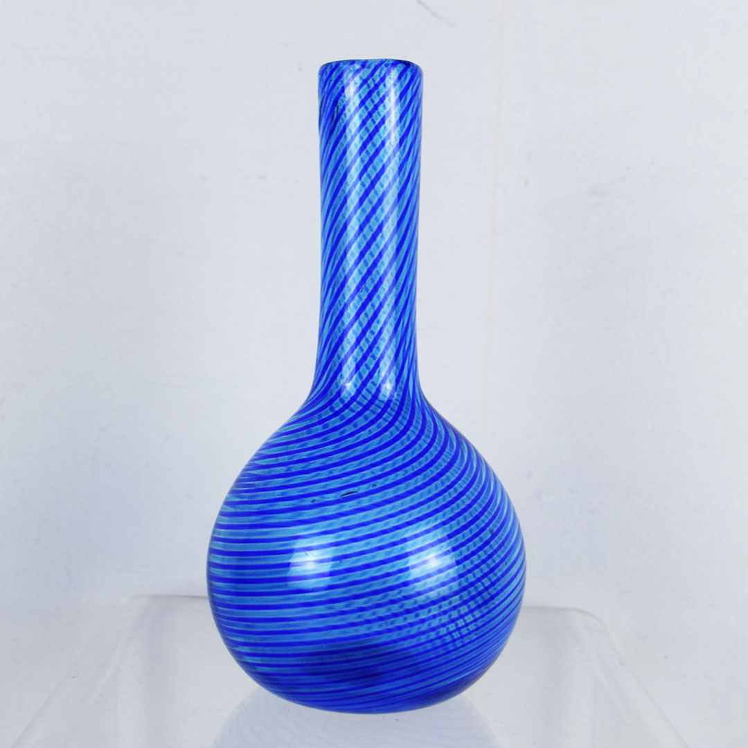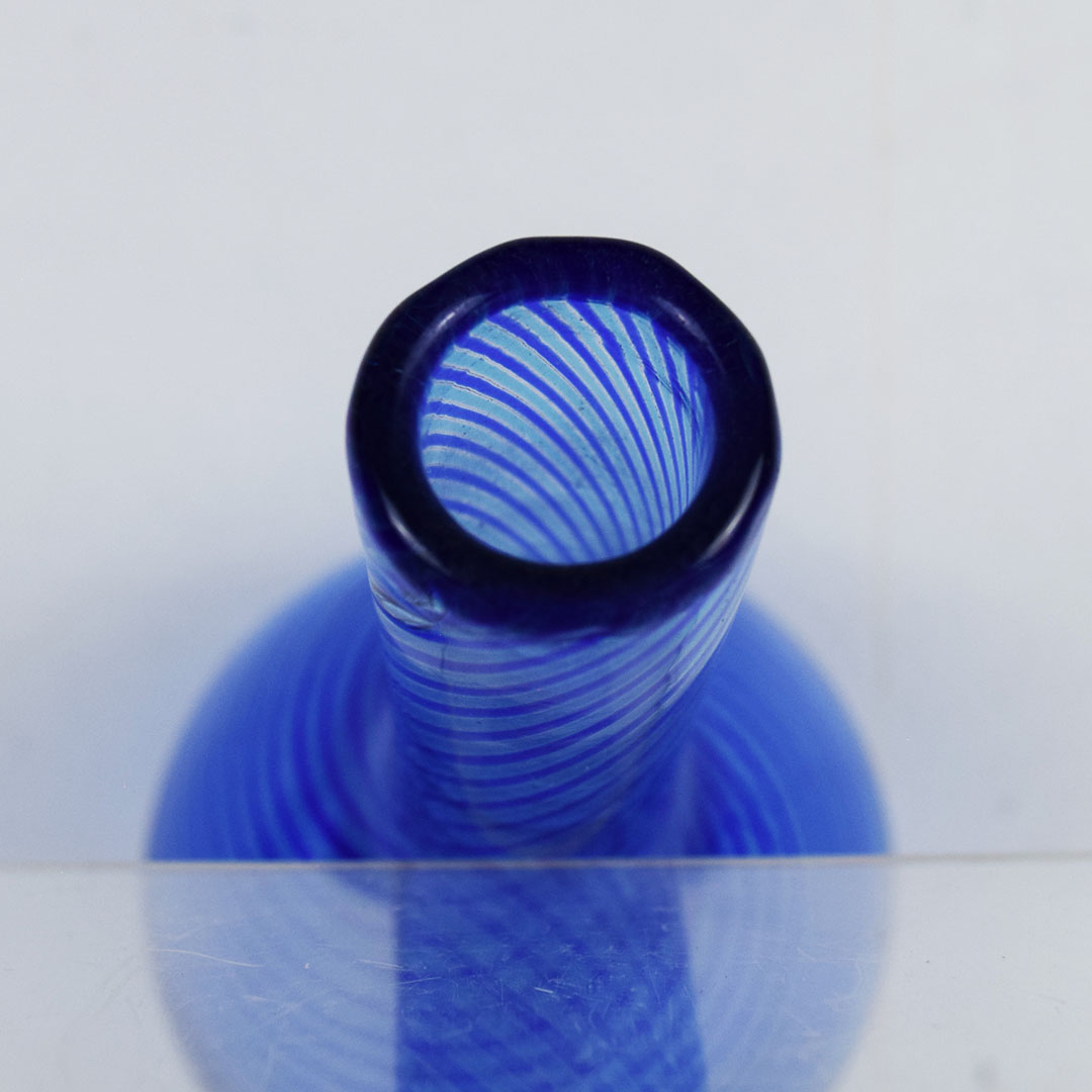 Dating from the early 1900’s, this beautiful Barber Shop hair tonic glass bottle features an eye catching swirl pattern and stands 6.5 inches tall by 3.5 inches wide at the base. It is not marked, but appears to be a Hobbs bottle from our research. The top edge is free of chips and cracks, with a factory mold mark just below the lip. A few minor imperfections can be seen in the glass as well. Great piece of Americana that will look great in your collection. 20738-QTP