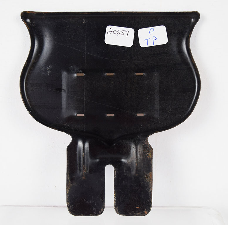 Dating from the 1940’s, this automobile license tag topper provided the driver a place to add their initials in the area below the Eagle. The die cut tin topper is very colorful and appears in new old stock condition. It appears to have some slight rust staining on it, but does not appear to be used. 20257-TP